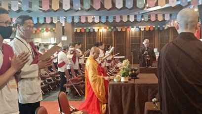 今年適逢靈鷲山大悲閉關15周年,為期21天的閉關於4月26日啟建,海內外參加人次近200人。開山住持心道法師率四眾弟子,以清淨的身口意,藉由三寶加持,虔誠持誦〈大悲咒〉,透過大眾共振願力,祈願人心安定和諧,眾生平安吉祥,世界無災無難。